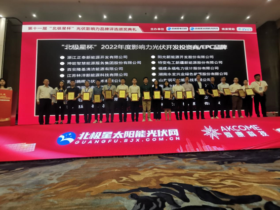 水發(fā)綠能公司在第十一屆“北極星杯”2022年度光伏影響力品牌頒獎(jiǎng)典禮榮獲兩項(xiàng)大獎(jiǎng)